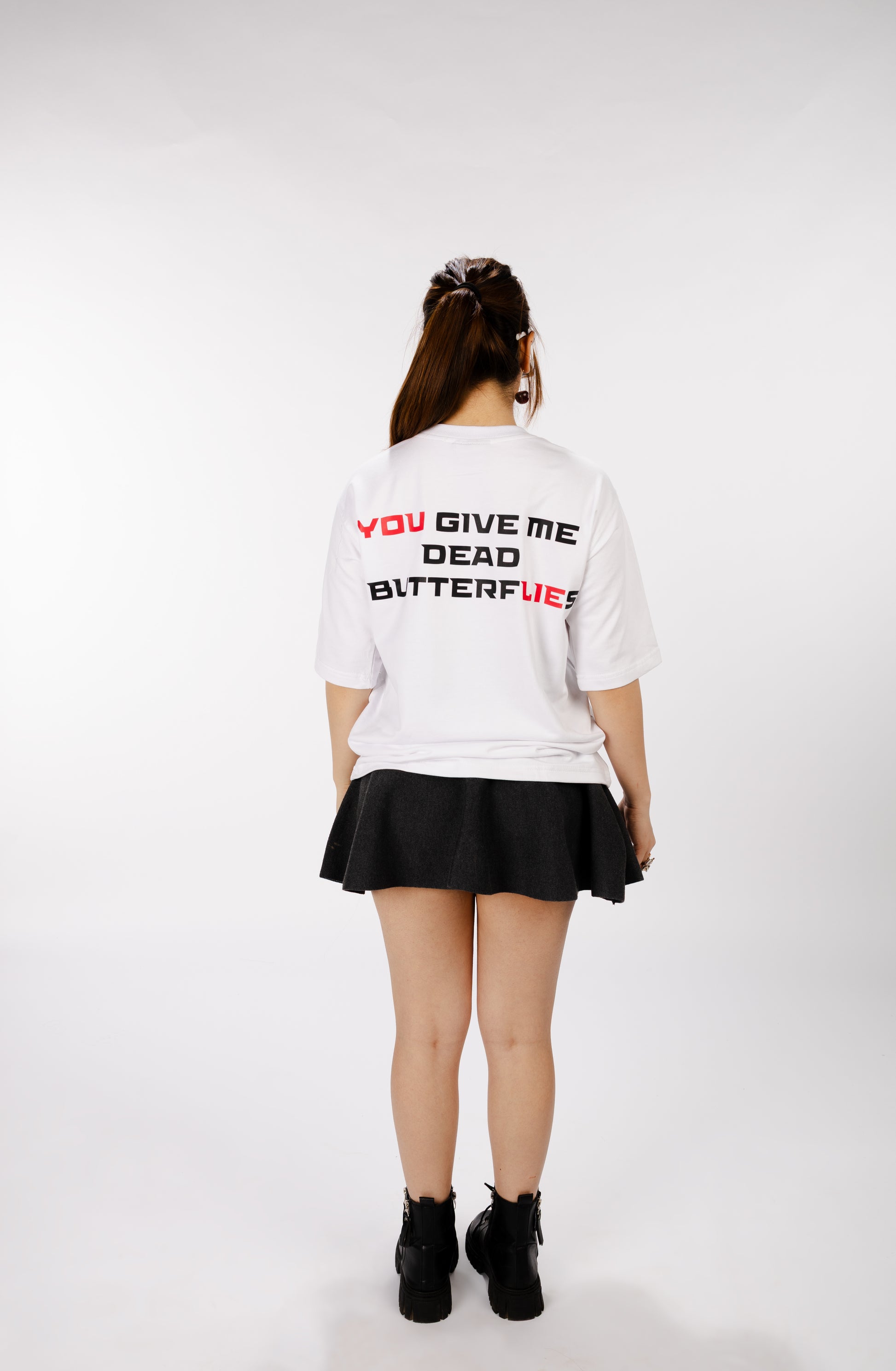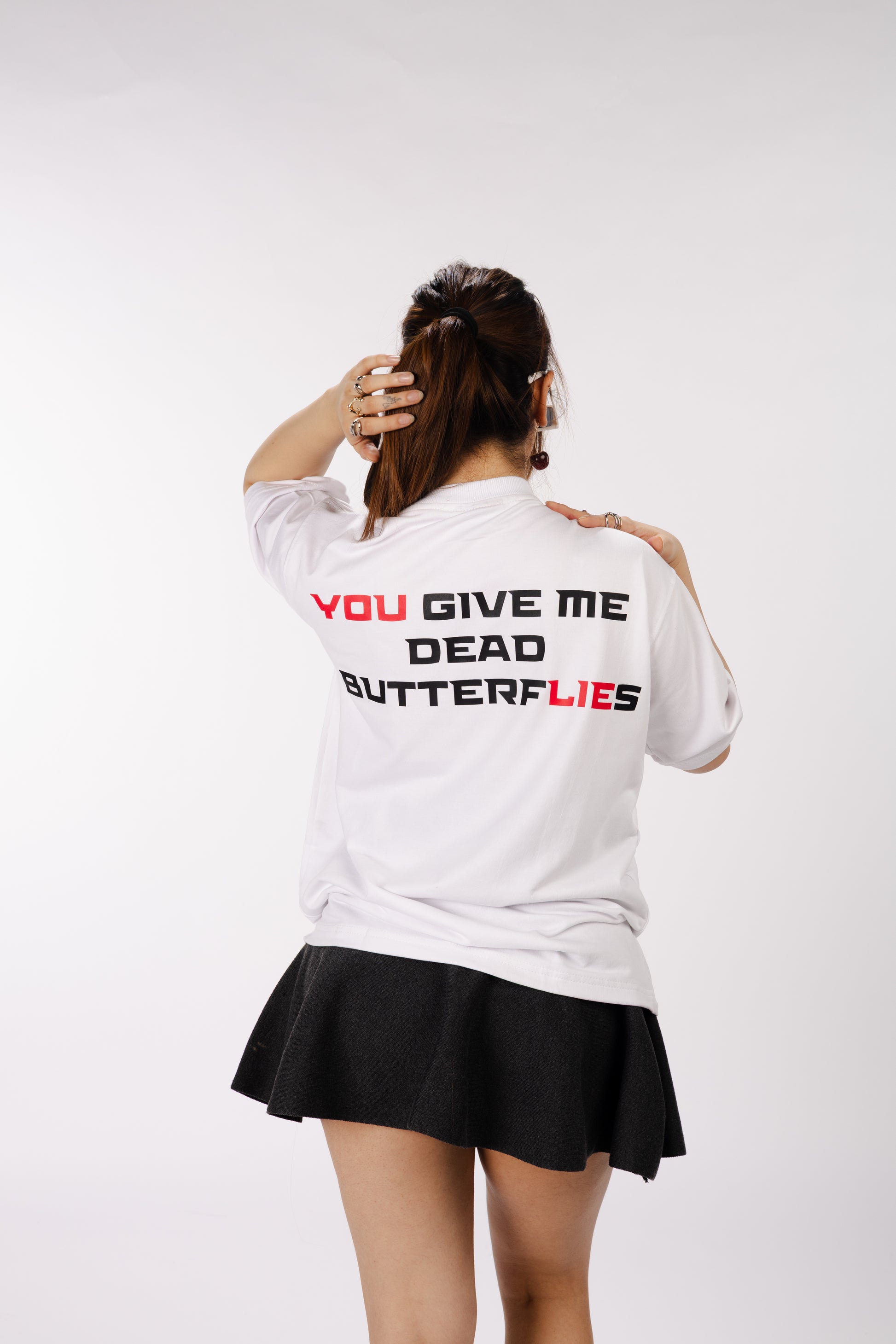This striking T-shirt blends bold style with artistic edge, YOU GIVE ME DEAD BUTTERFLIES says everything about it